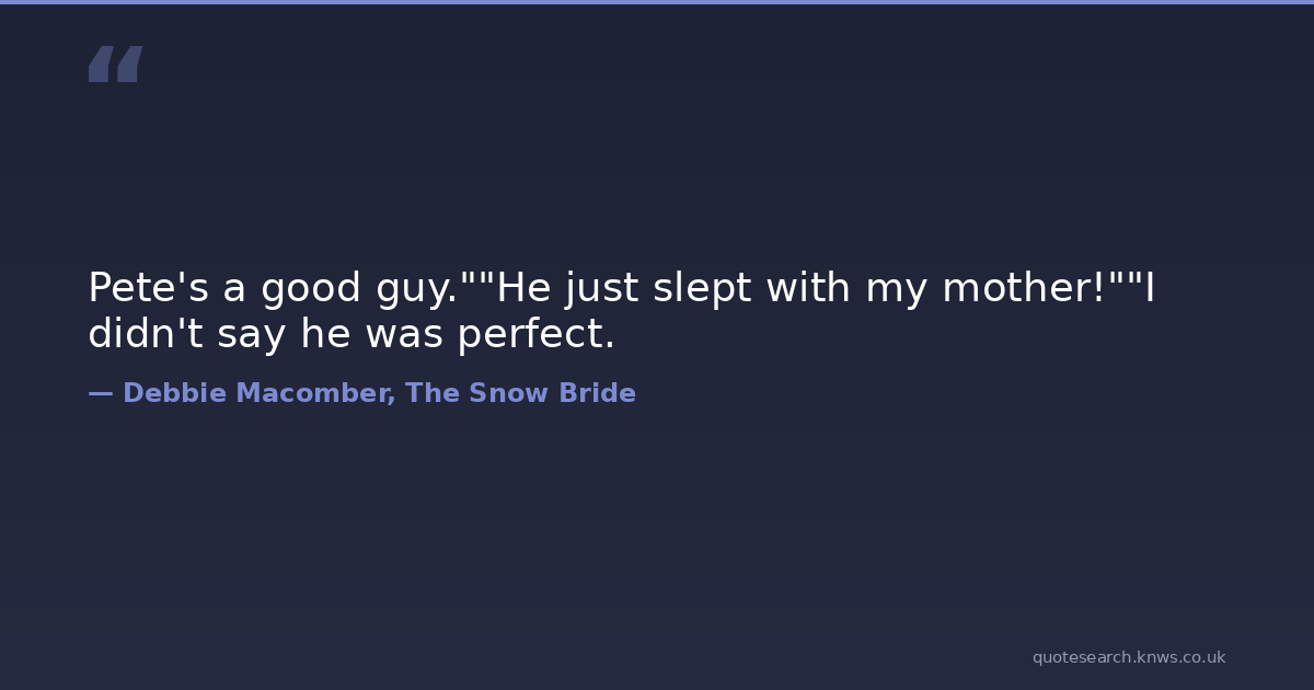 Pete's a good guy.""He just slept with my mother!""I didn't say he was perfect. alaska contemporary-romance snow Download Image Share on X Share on Facebook Copy Link