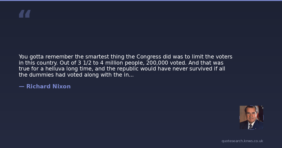 You gotta remember the smartest thing the Congress did was to limit the voters in this country. Out of 3 1/2 to 4 million people, 200,000 voted. And that was true for a helluva long time, and the republic would have never survived if all the dummies had voted along with the intelligent people.