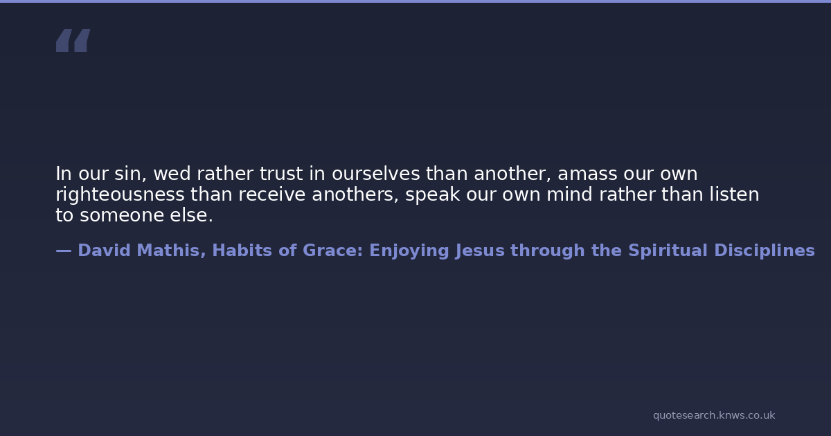 In our sin, wed rather trust in ourselves than another, amass our own righteousness than receive anothers, speak our own mind rather than listen to someone else.