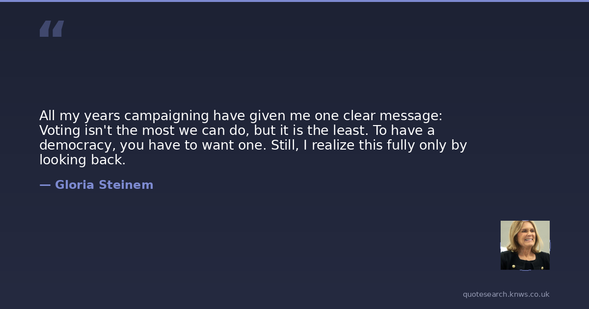 All my years campaigning have given me one clear message: Voting isn't the most we can do, but it is the least. To have a democracy, you have to want one. Still, I realize this fully only by looking back.