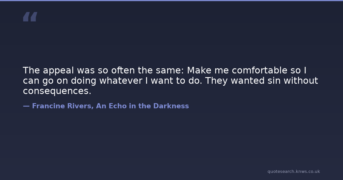 The appeal was so often the same: Make me comfortable so I can go on doing whatever I want to do. They wanted sin without consequences.