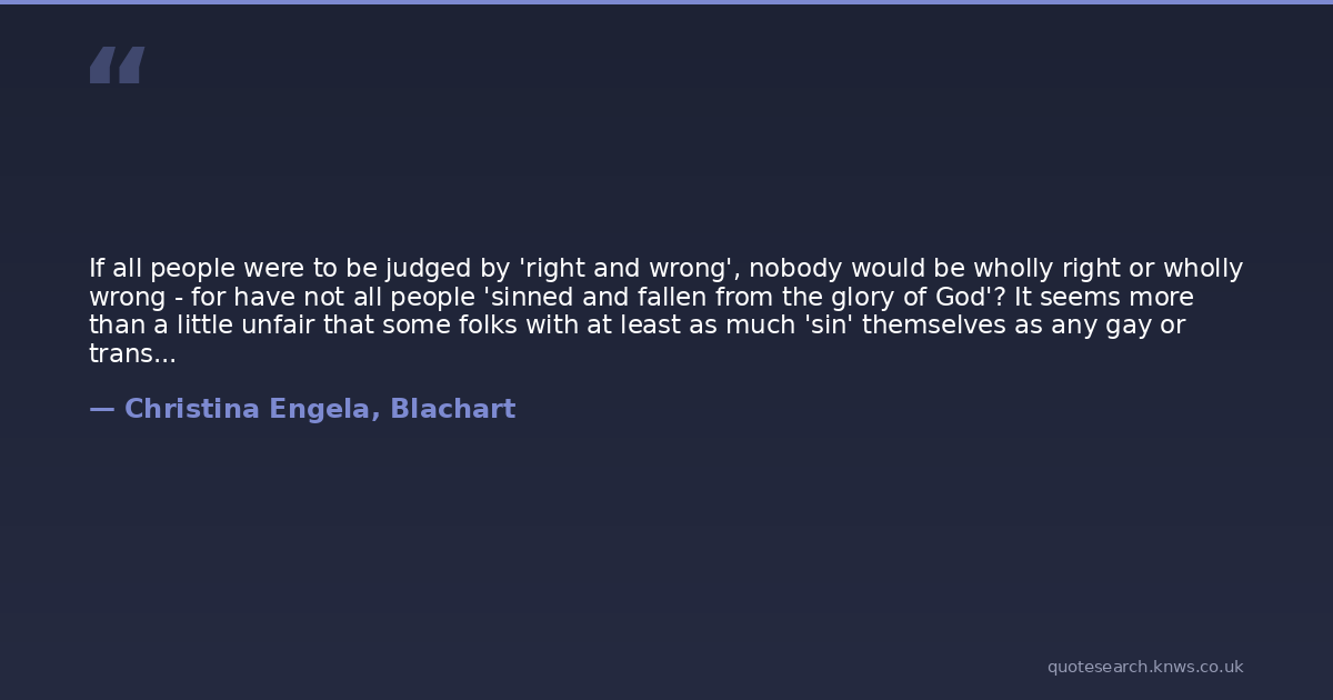 If all people were to be judged by 'right and wrong', nobody would be wholly right or wholly wrong - for have not all people 'sinned and fallen from the glory of God'? It seems more than a little unfair that some folks with at least as much 'sin' themselves as any gay or trans person, like to jump up and down and point fingers at other people.