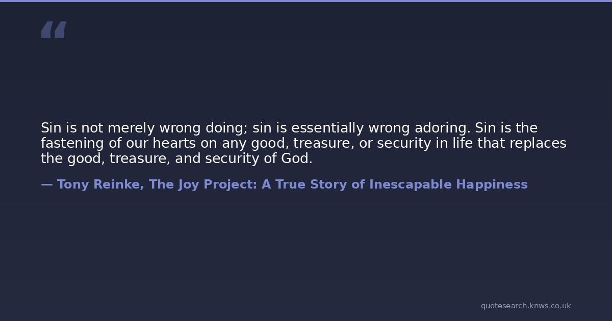 Sin is not merely wrong doing; sin is essentially wrong adoring. Sin is the fastening of our hearts on any good, treasure, or security in life that replaces the good, treasure, and security of God.