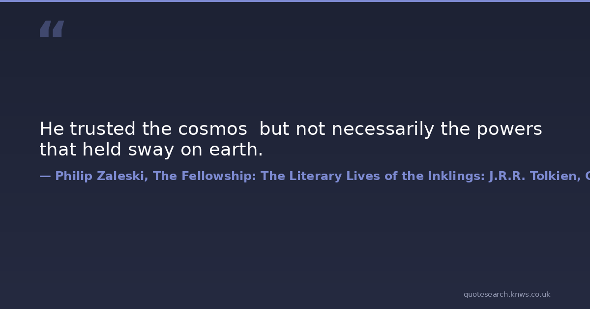 He trusted the cosmos but not necessarily the powers that held sway on earth.