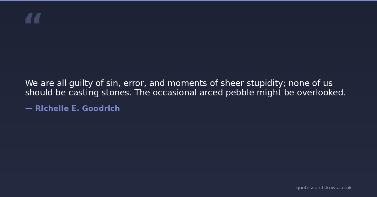 We are all guilty of sin, error, and moments of sheer stupidity; none of us should be casting stones. The occasional arced pebble might be overlooked.