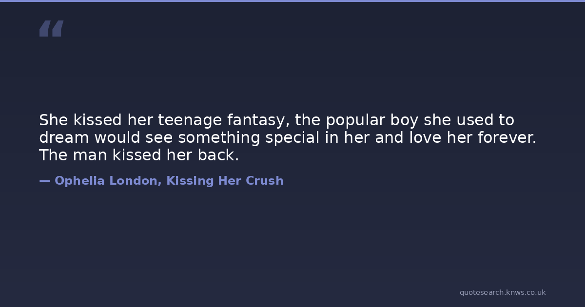 She kissed her teenage fantasy, the popular boy she used to dream would see something special in her and love her forever. The man kissed her back.