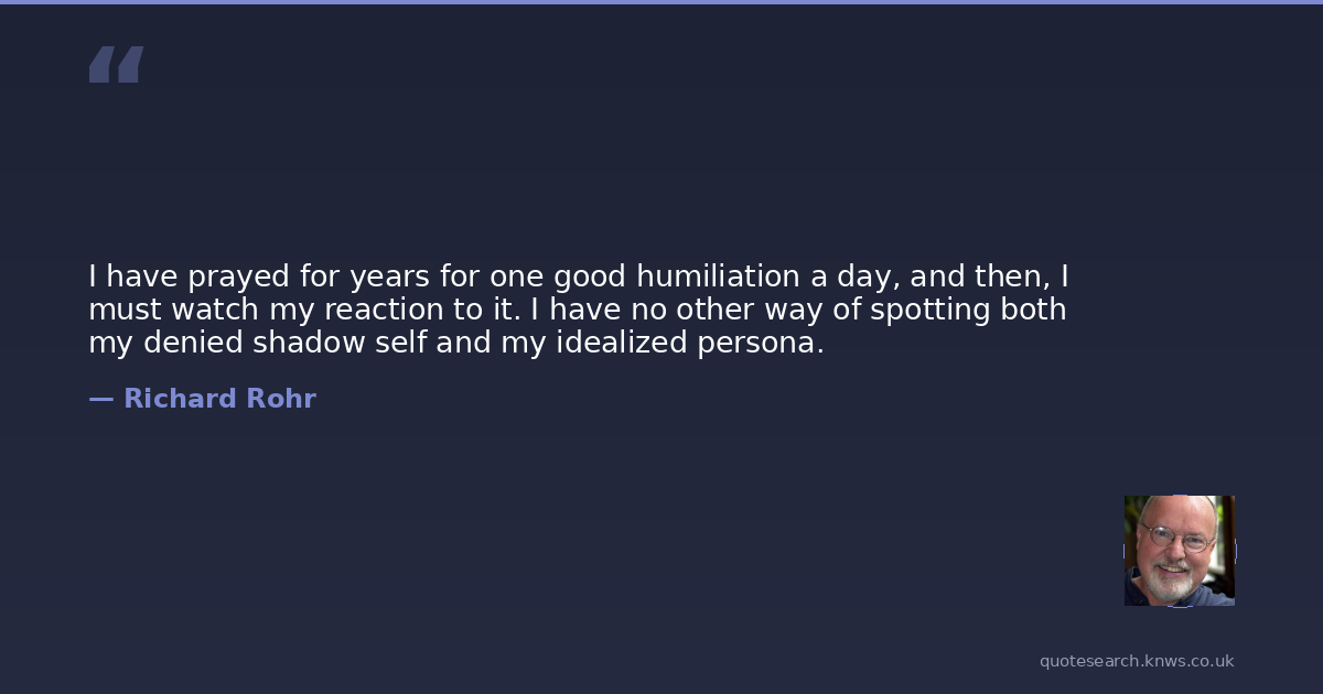 I have prayed for years for one good humiliation a day, and then, I must watch my reaction to it. I have no other way of spotting both my denied shadow self and my idealized persona.