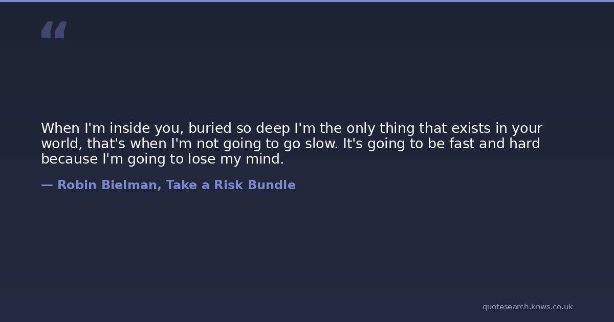 When I'm inside you, buried so deep I'm the only thing that exists in your world, that's when I'm not going to go slow. It's going to be fast and hard because I'm going to lose my mind.