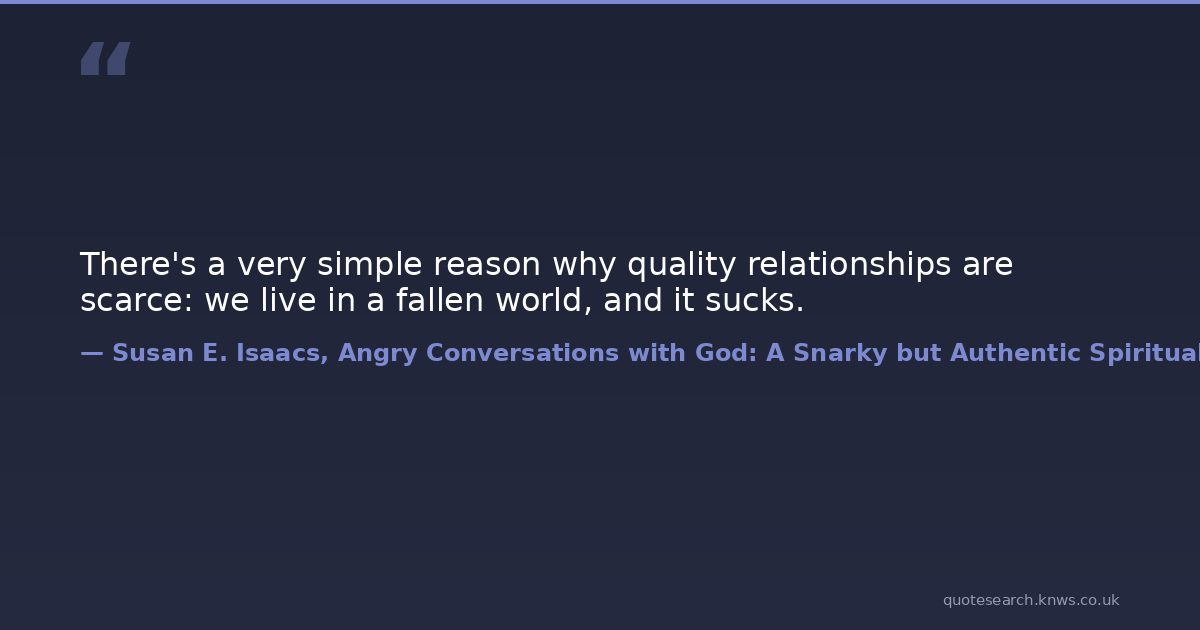 There's a very simple reason why quality relationships are scarce: we live in a fallen world, and it sucks.