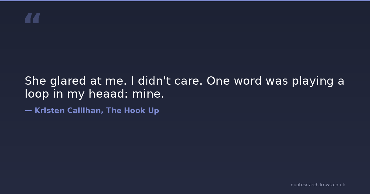 She glared at me. I didn't care. One word was playing a loop in my heaad: mine. college contemporary-romance humor new-adult the-hook-up Download Image Share on X Share on Facebook Copy Link