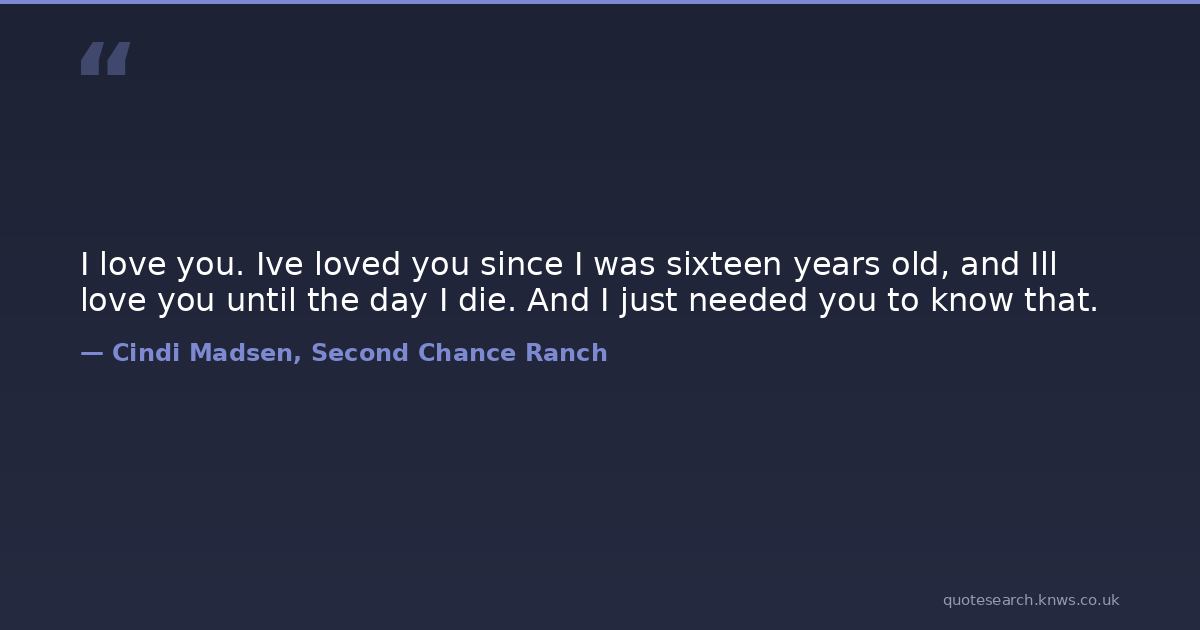 I love you. Ive loved you since I was sixteen years old, and Ill love you until the day I die. And I just needed you to know that.