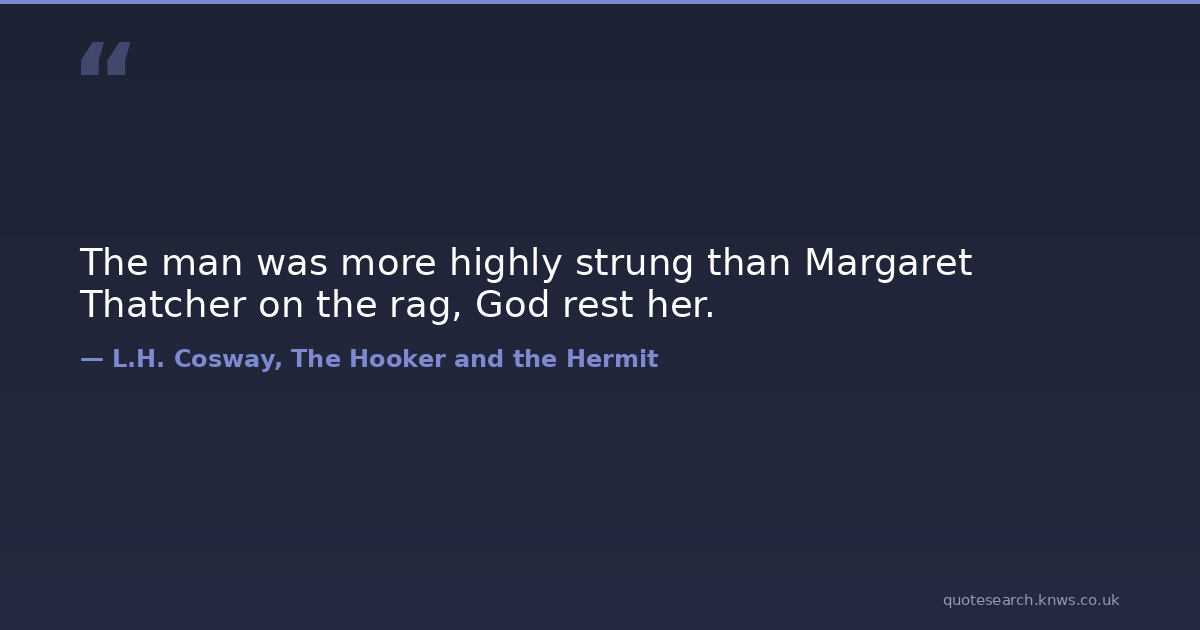 The man was more highly strung than Margaret Thatcher on the rag, God rest her.