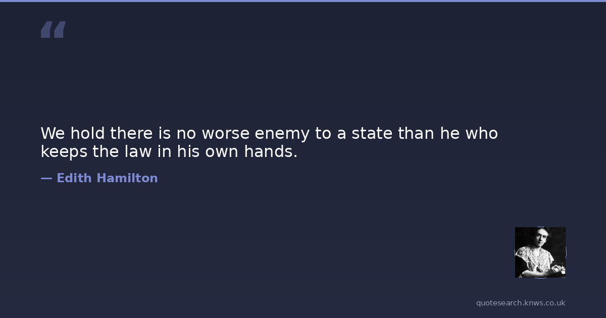 We hold there is no worse enemy to a state than he who keeps the law in his own hands.