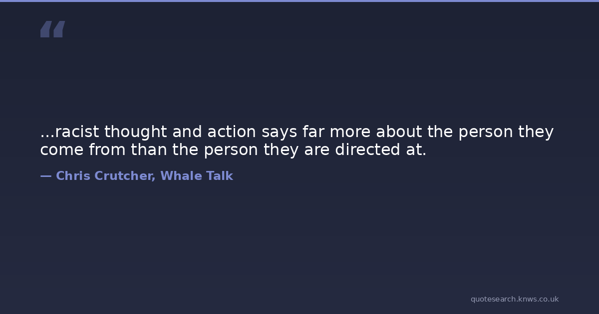 ...racist thought and action says far more about the person they come from than the person they are directed at. bigotry prejudice racism small-mindedness Download Image Share on X Share on Facebook Copy Link