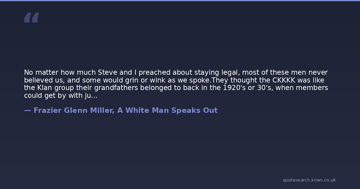 About Frazier Glenn Miller, A White Man Speaks Out