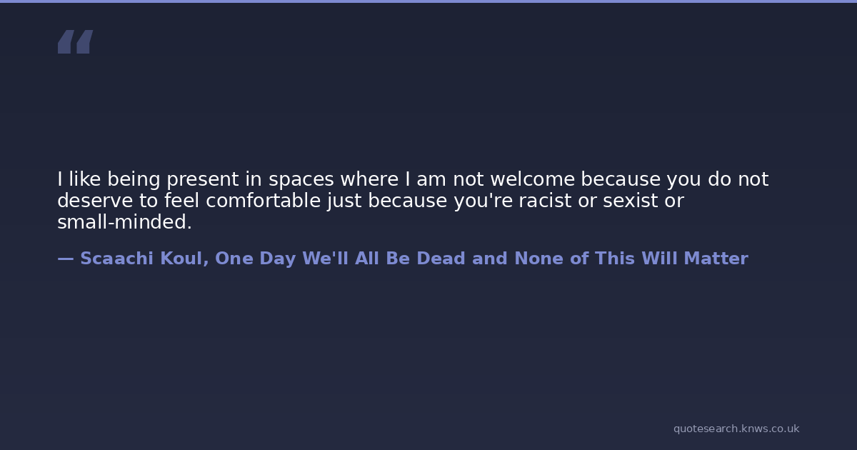 I like being present in spaces where I am not welcome because you do not deserve to feel comfortable just because you're racist or sexist or small-minded.