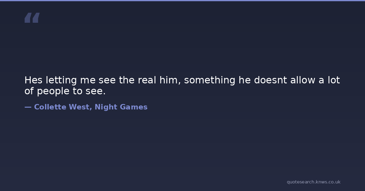 Hes letting me see the real him, something he doesnt allow a lot of people to see.
