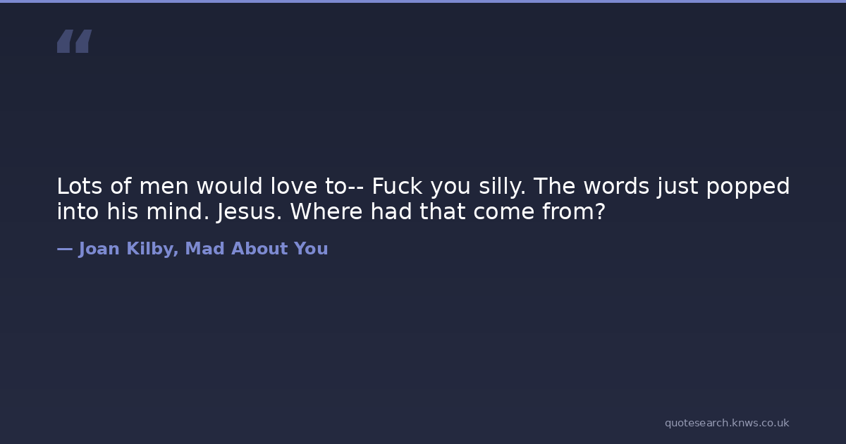 Lots of men would love to-- Fuck you silly. The words just popped into his mind. Jesus. Where had that come from?