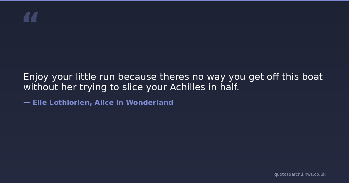 Enjoy your little run because theres no way you get off this boat without her trying to slice your Achilles in half.