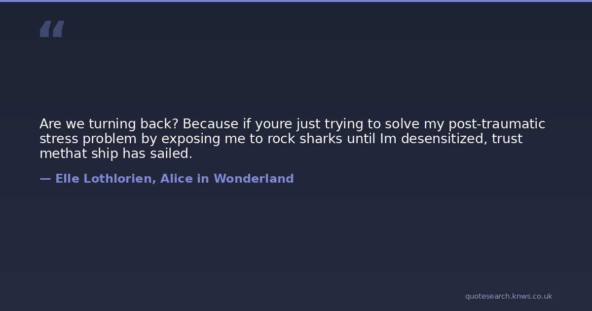 Are we turning back? Because if youre just trying to solve my post-traumatic stress problem by exposing me to rock sharks until Im desensitized, trust methat ship has sailed.