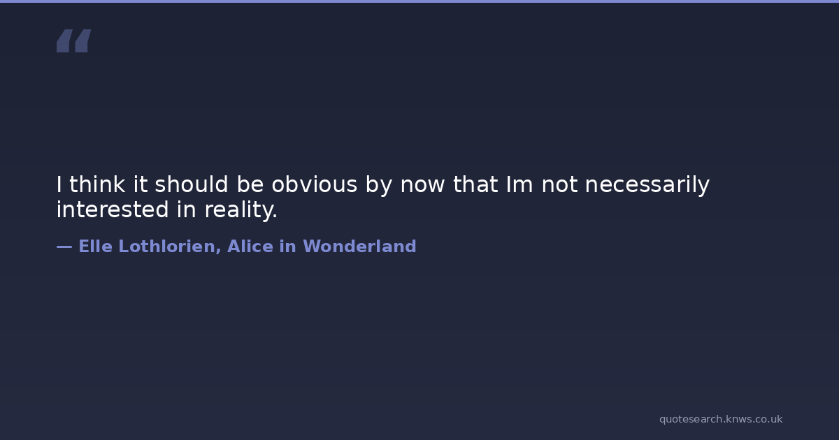 I think it should be obvious by now that Im not necessarily interested in reality.
