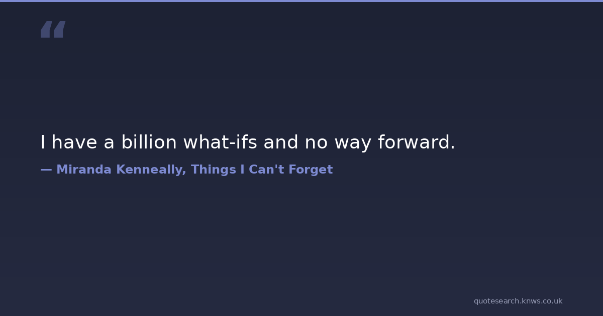 I have a billion what-ifs and no way forward. 2013 contemporary-quotes contemporary-romance Download Image Share on X Share on Facebook Copy Link
