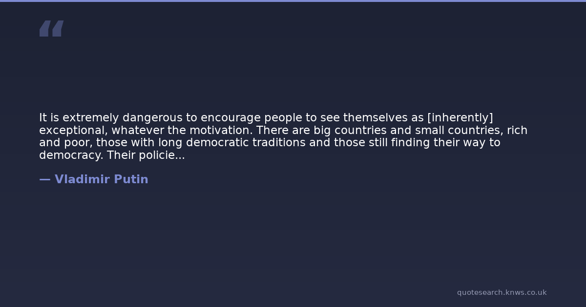 It is extremely dangerous to encourage people to see themselves as [inherently] exceptional, whatever the motivation. There are big countries and small countries, rich and poor, those with long democratic traditions and those still finding their way to democracy. Their policies differ, too. We are all different, but when we ask for the Lords blessings, we must not forget that God created us equal.