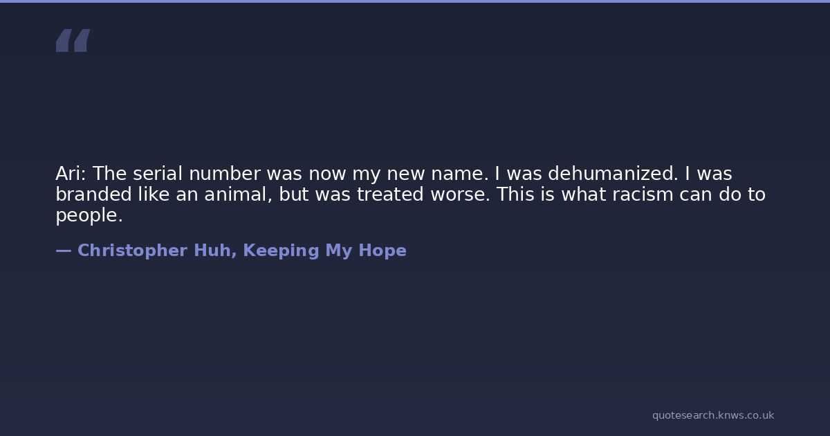 Ari: The serial number was now my new name. I was dehumanized. I was branded like an animal, but was treated worse. This is what racism can do to people.