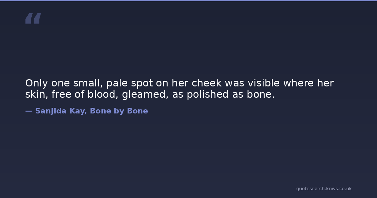 Only one small, pale spot on her cheek was visible where her skin, free of blood, gleamed, as polished as bone.