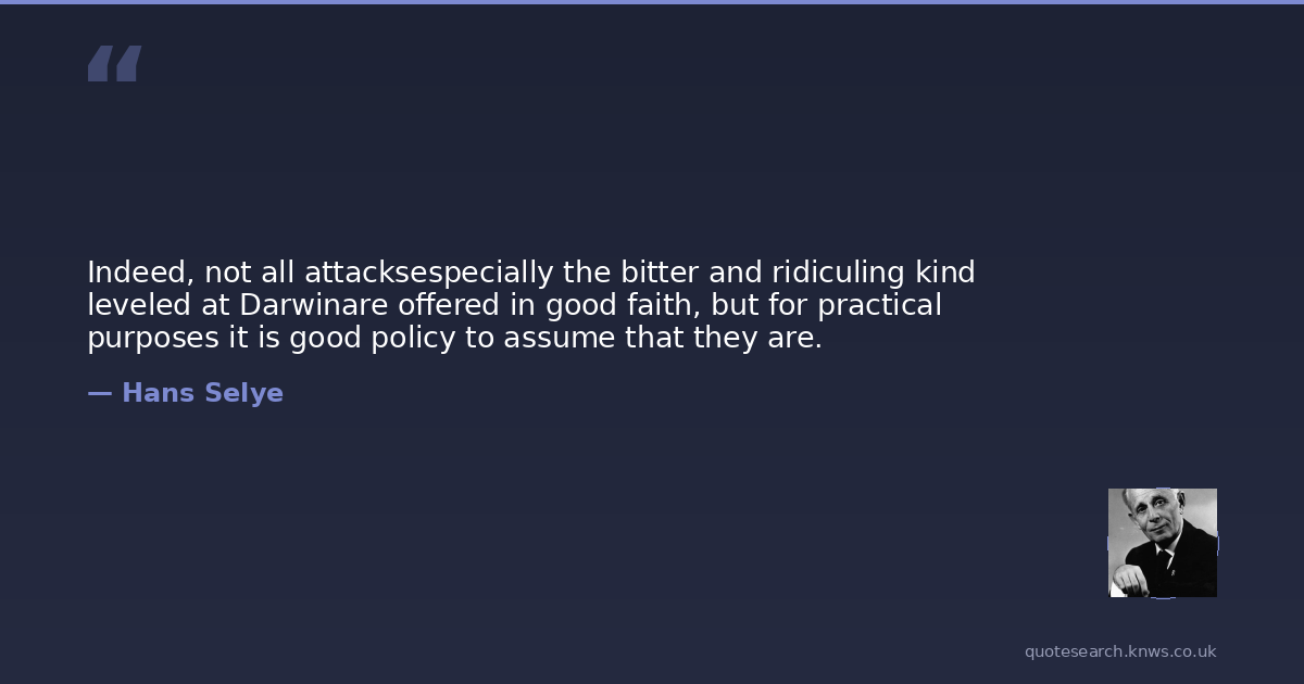 Indeed, not all attacksespecially the bitter and ridiculing kind leveled at Darwinare offered in good faith, but for practical purposes it is good policy to assume that they are.