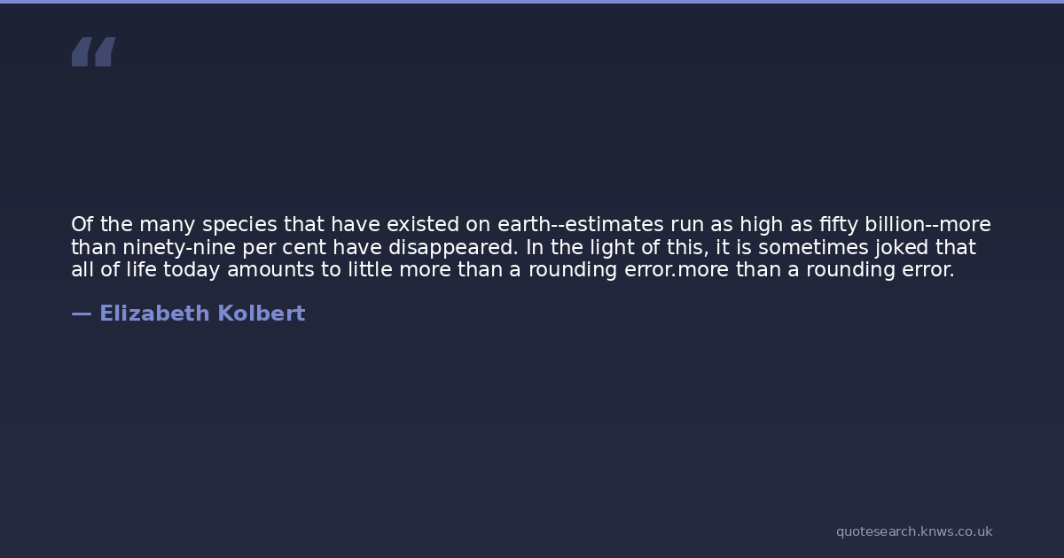 Of the many species that have existed on earth--estimates run as high as fifty billion--more than ninety-nine per cent have disappeared. In the light of this, it is sometimes joked that all of life today amounts to little more than a rounding error.more than a rounding error.