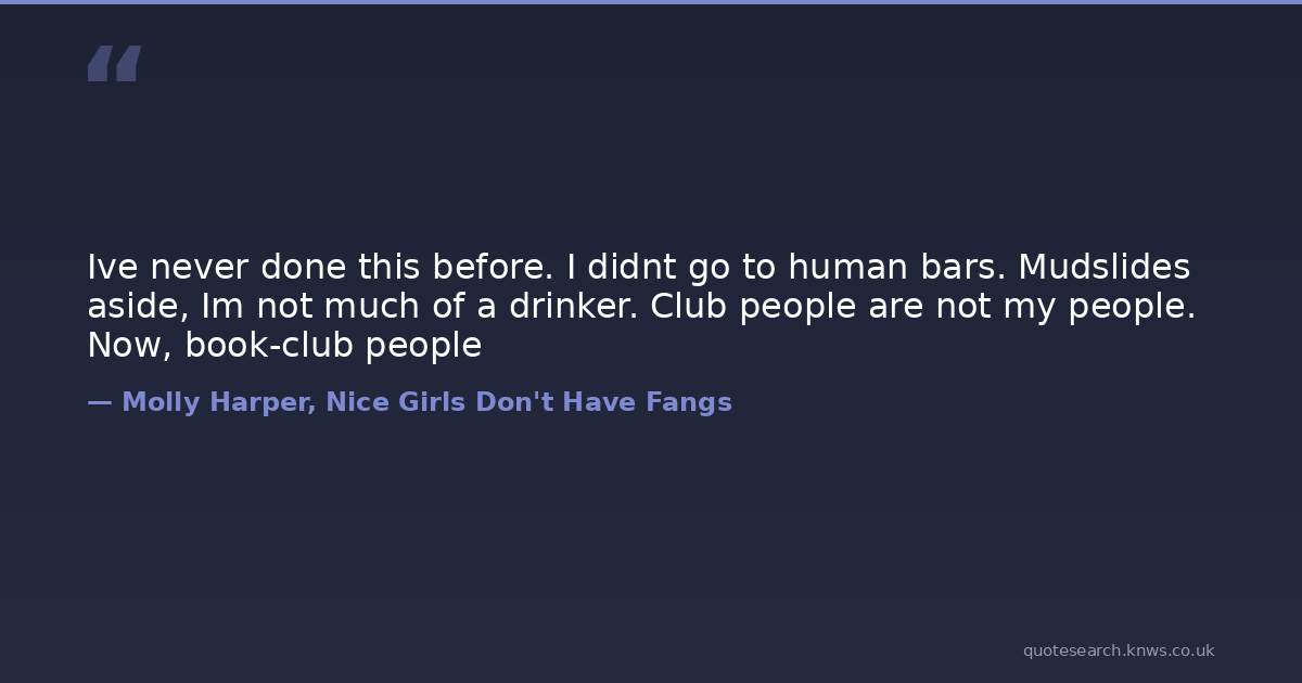 Ive never done this before. I didnt go to human bars. Mudslides aside, Im not much of a drinker. Club people are not my people. Now, book-club people