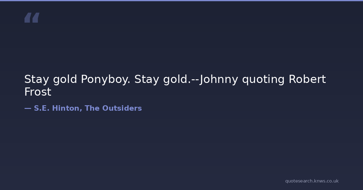 Stay gold Ponyboy. Stay gold.--Johnny quoting Robert Frost
