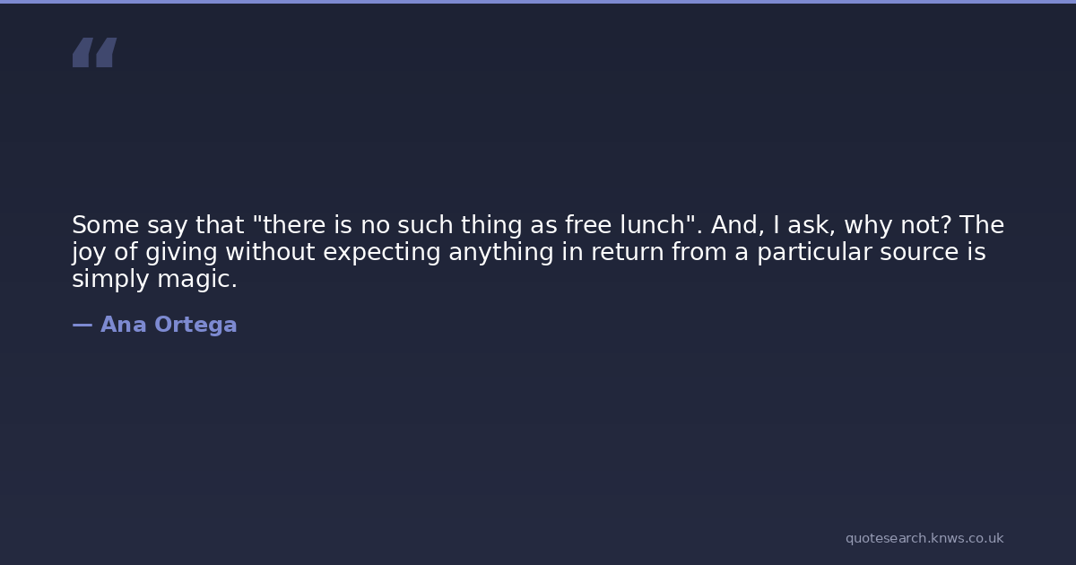 Some say that "there is no such thing as free lunch". And, I ask, why not? The joy of giving without expecting anything in return from a particular source is simply magic.