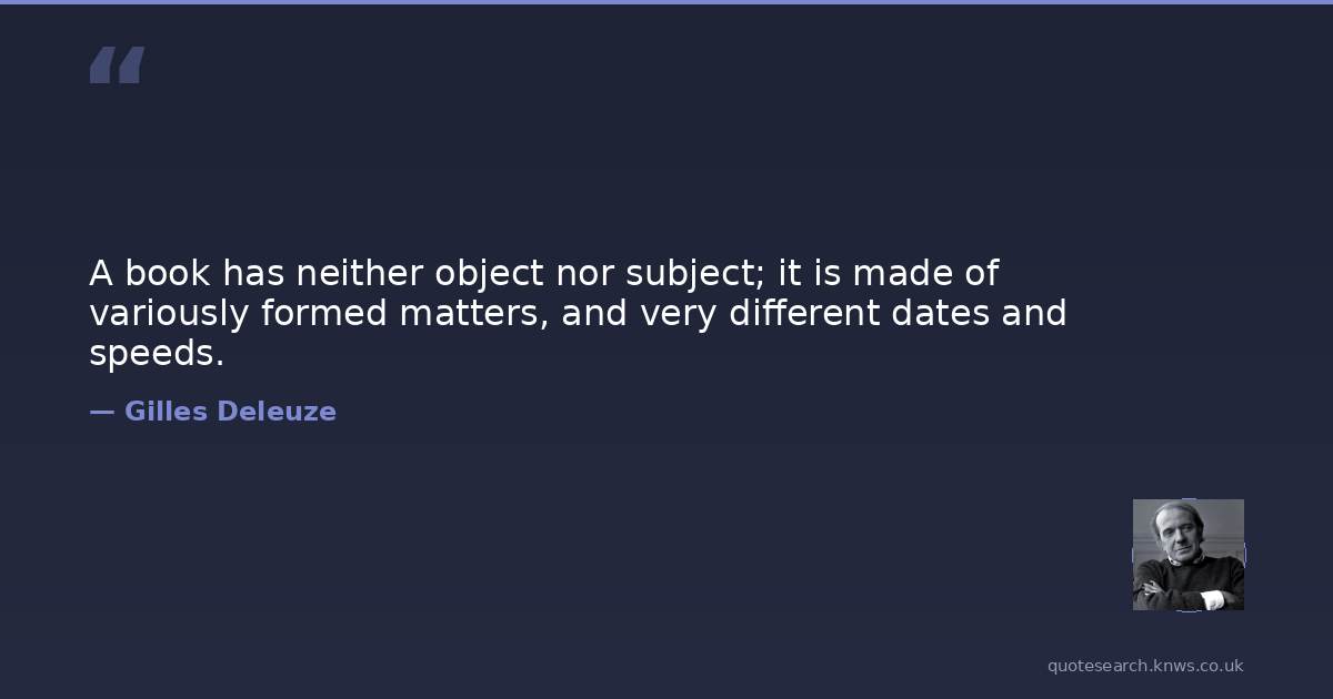 A book has neither object nor subject; it is made of variously formed matters, and very different dates and speeds.