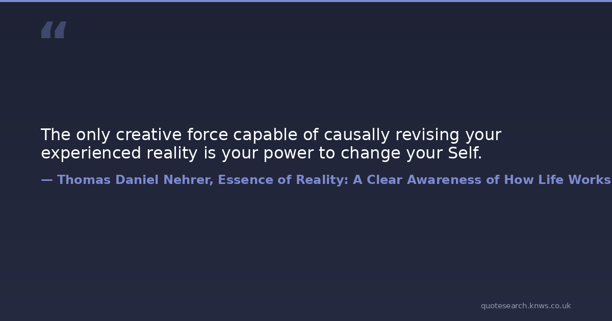 The only creative force capable of causally revising your experienced reality is your power to change your Self.