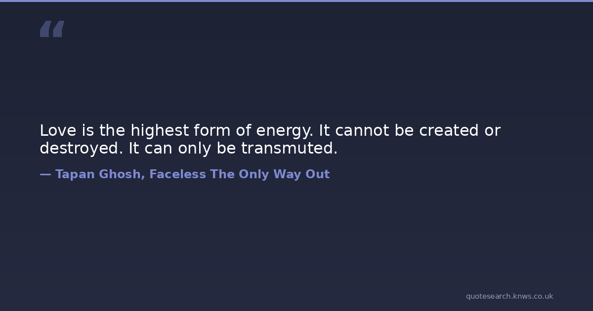 Love is the highest form of energy. It cannot be created or destroyed. It can only be transmuted.