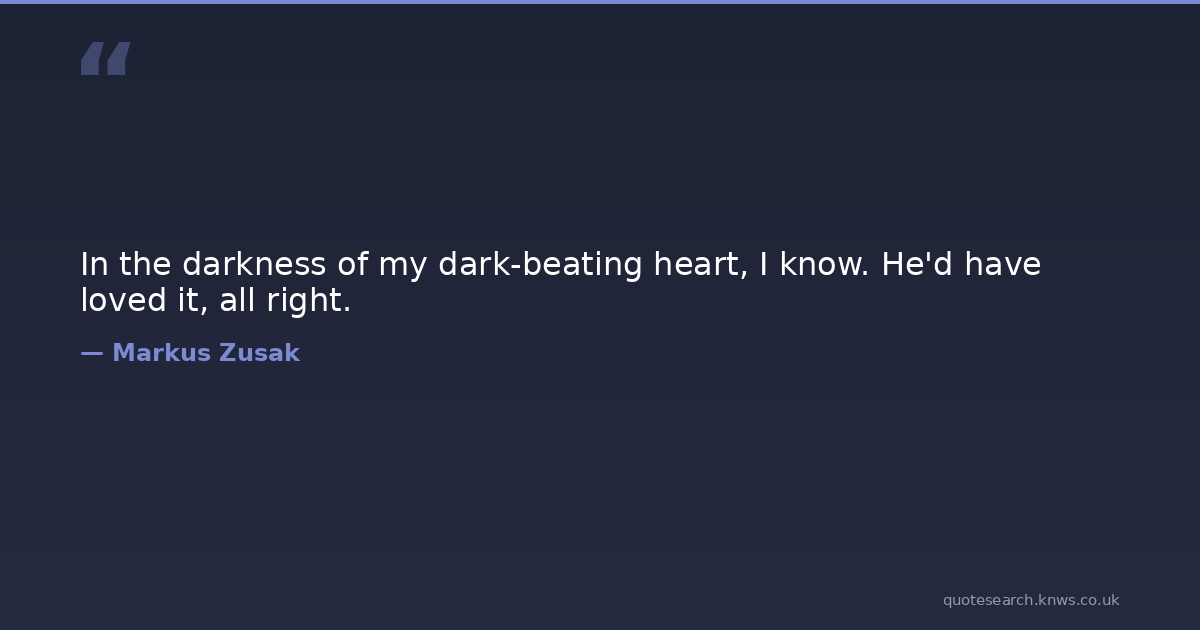 In the darkness of my dark-beating heart, I know. He'd have loved it, all right.