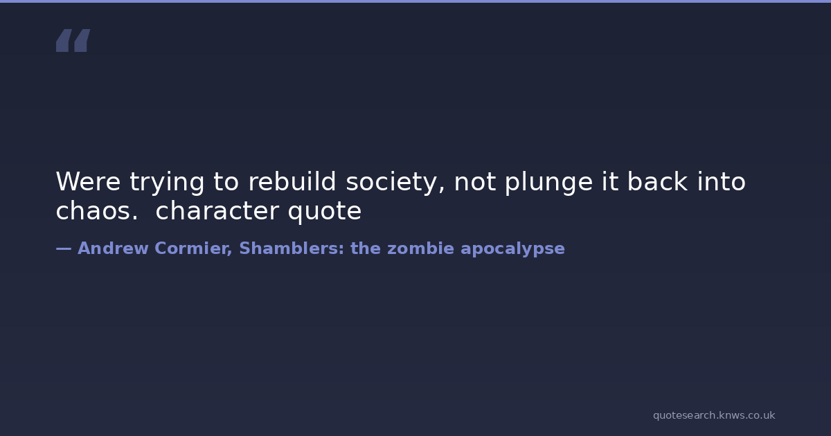 Were trying to rebuild society, not plunge it back into chaos. character quote