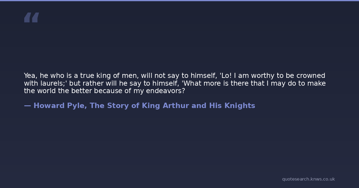 Yea, he who is a true king of men, will not say to himself, 'Lo! I am worthy to be crowned with laurels;' but rather will he say to himself, 'What more is there that I may do to make the world the better because of my endeavors?