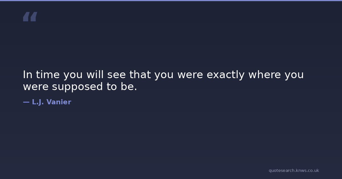 In time you will see that you were exactly where you were supposed to be. faith-quotes Download Image Share on X Share on Facebook Copy Link