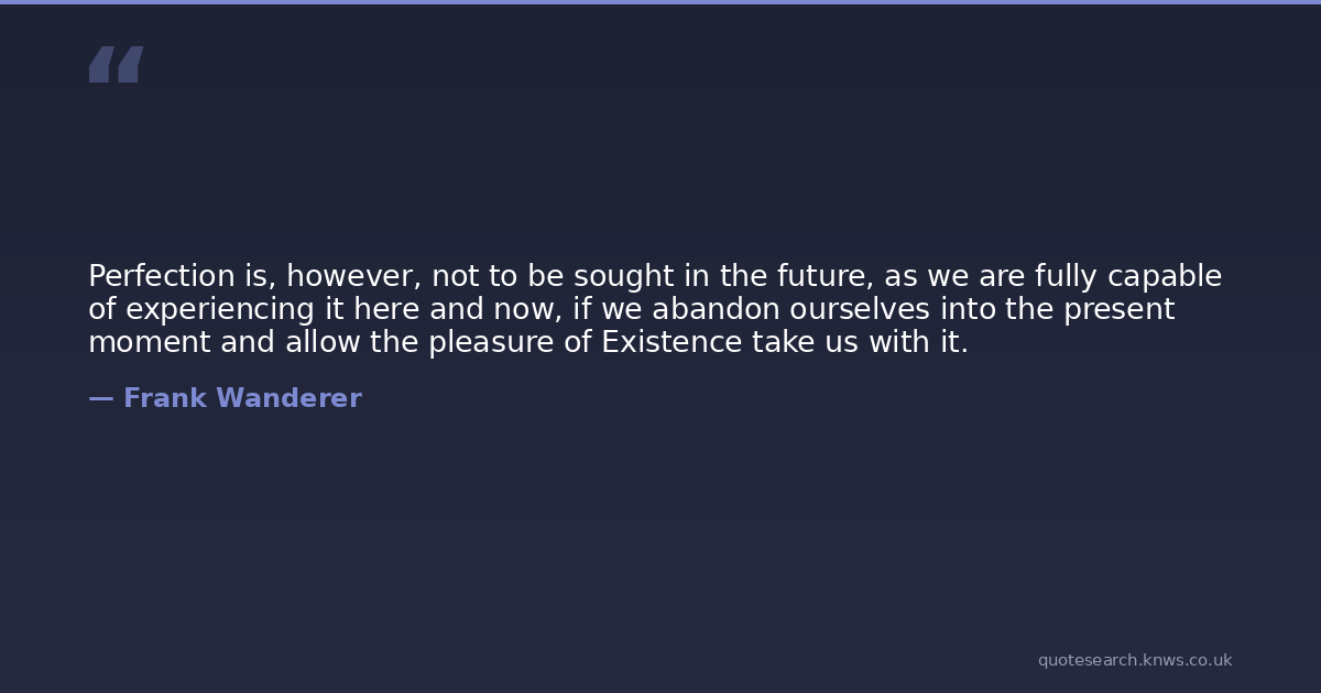 Perfection is, however, not to be sought in the future, as we are fully capable of experiencing it here and now, if we abandon ourselves into the present moment and allow the pleasure of Existence take us with it.