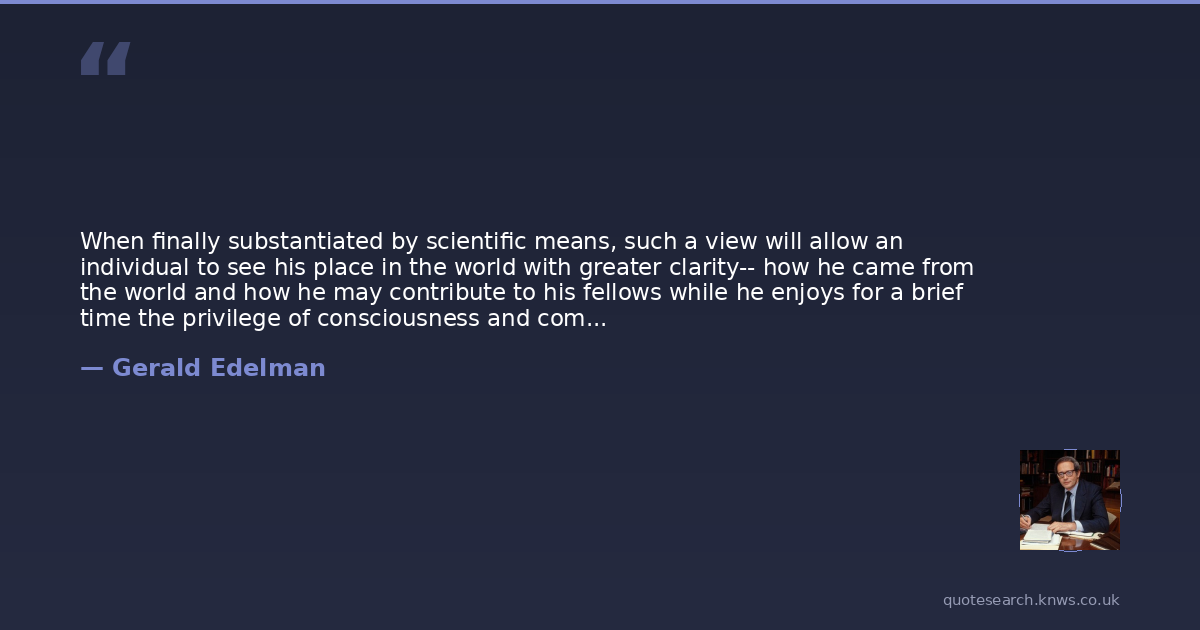 When finally substantiated by scientific means, such a view will allow an individual to see his place in the world with greater clarity-- how he came from the world and how he may contribute to his fellows while he enjoys for a brief time the privilege of consciousness and communication.