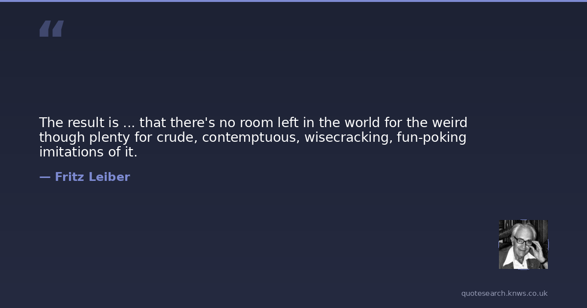 Fritz Leiber was a 20th-century American fantasy, horror, and sf writer. Fritz Reuter Leiber Jr. was an American writer of fantasy, horror, and science fiction. Read more on Wikipedia →
