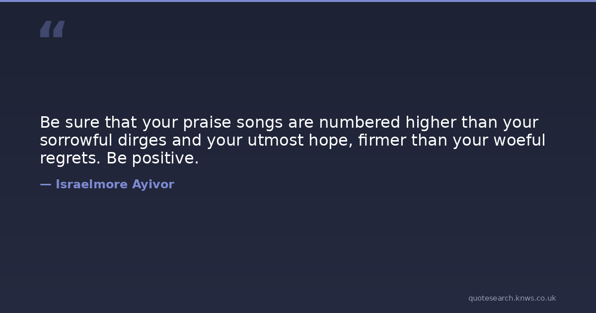 Be sure that your praise songs are numbered higher than your sorrowful dirges and your utmost hope, firmer than your woeful regrets. Be positive.