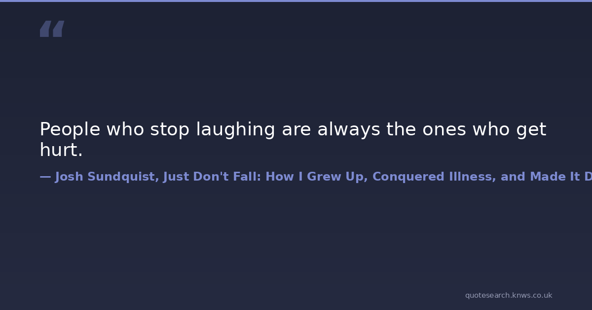 People who stop laughing are always the ones who get hurt. hurt laugh laughing laughter Download Image Share on X Share on Facebook Copy Link