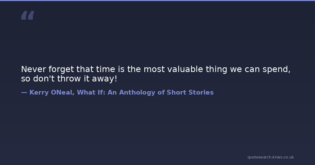 Never forget that time is the most valuable thing we can spend, so don't throw it away!