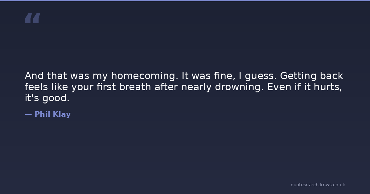 And that was my homecoming. It was fine, I guess. Getting back feels like your first breath after nearly drowning. Even if it hurts, it's good.