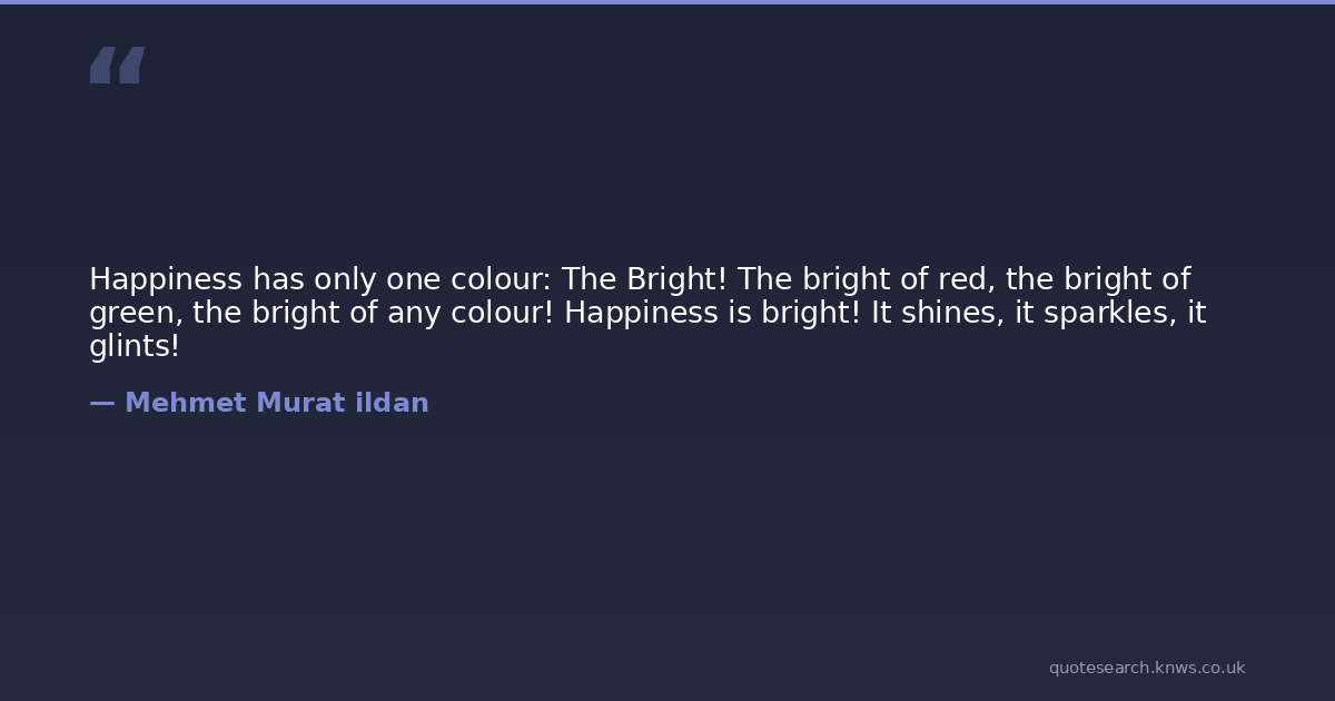 Happiness has only one colour: The Bright! The bright of red, the bright of green, the bright of any colour! Happiness is bright! It shines, it sparkles, it glints!