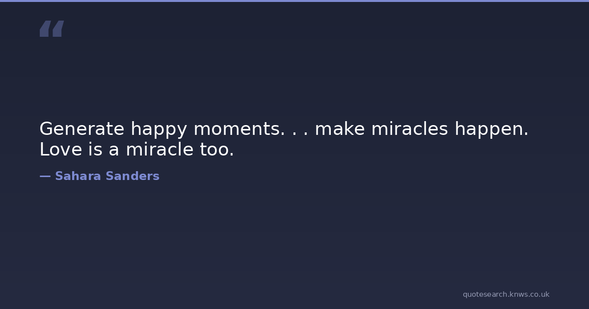 Generate happy moments. . . make miracles happen. Love is a miracle too. happiness-advice happiness-life happiness-quotes love-and-romance Download Image Share on X Share on Facebook Copy Link